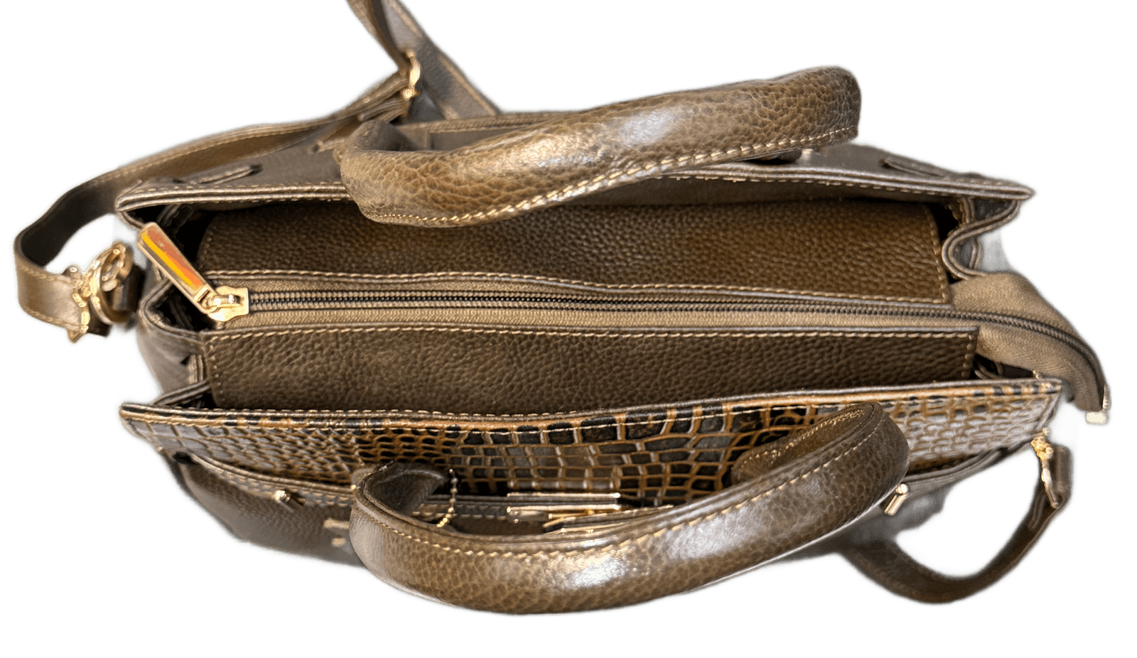 • Premium textured leather with croc-embossed trim