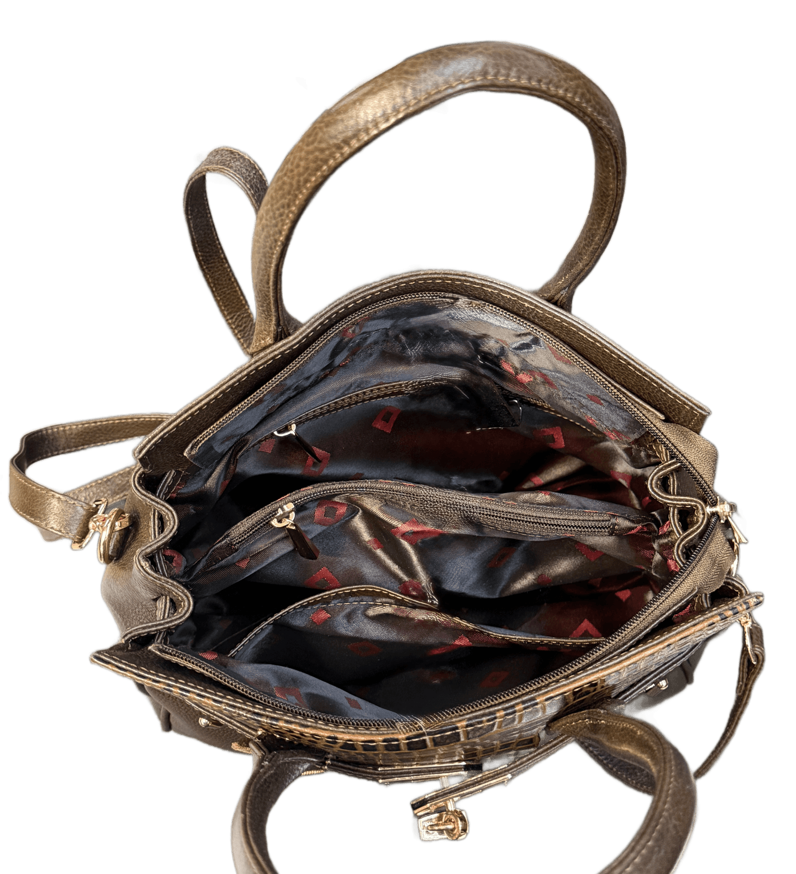 • Hardware: Gold-tone metal accents